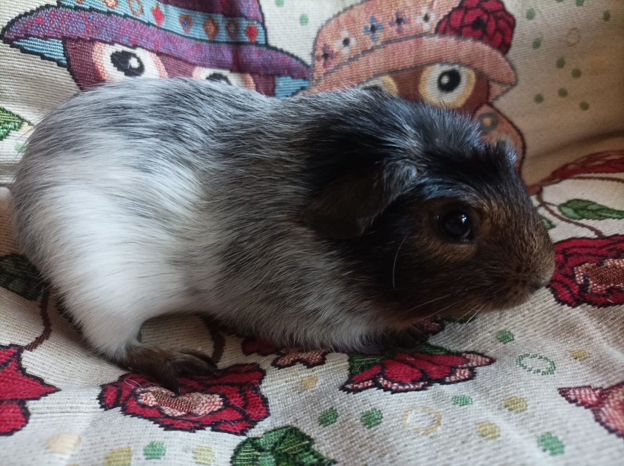 JMÉNO: Rozina Morčínkov PLEMENO: coronet Barva : bílá červená černá DATUM NAROZENÍ: 30.9.2025 POHLAVÍ: samice volná |